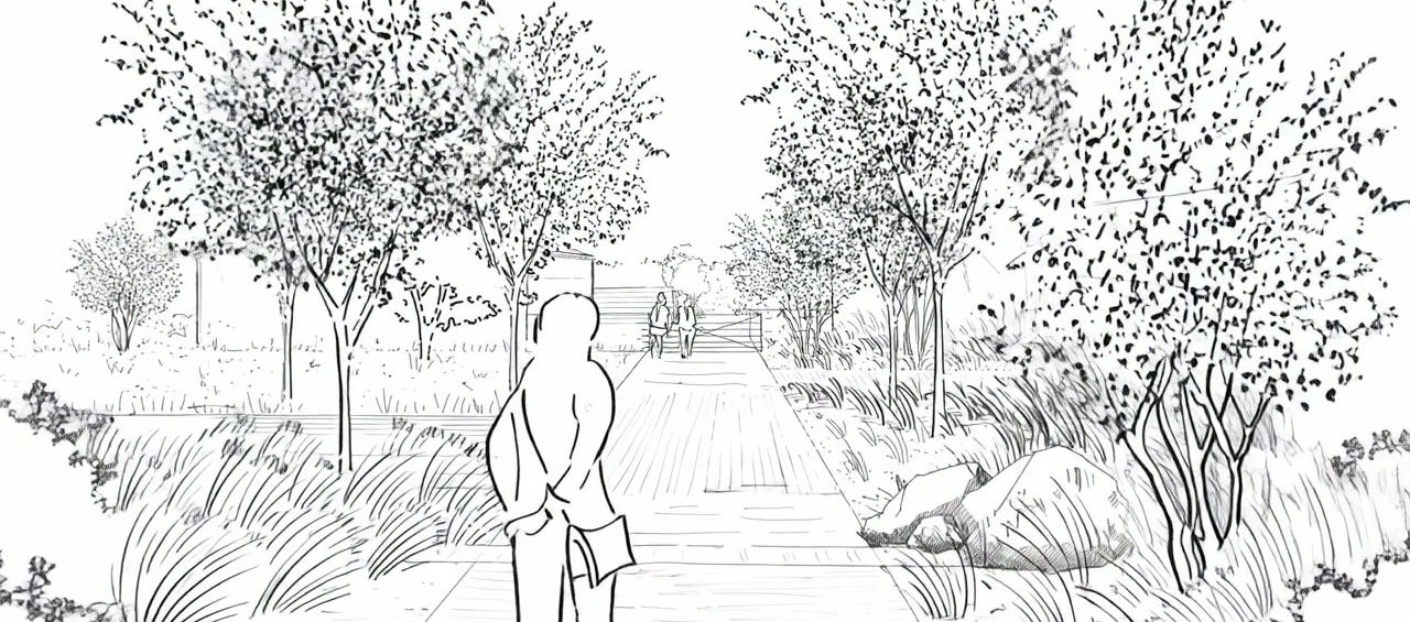 The landscape establishes a learning landscape in which research, ecological restoration, and public engagement are integrated. Outdoor classrooms, research areas and accessible walking routes allow visitors, students and scientists to observe peatland restoration processes and wetland ecology directly within the landscape. Areas of woodland management, orchard planting and urban ecology habitats provide spaces for biodiversity, education and stewardship.
